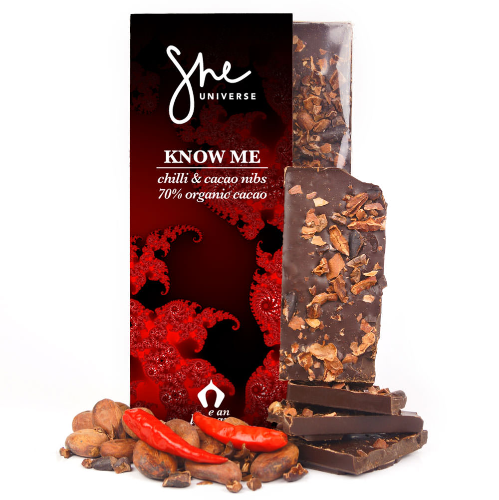 Know Me Bar ❤︎ chilli & cacao nibs 70% 90g